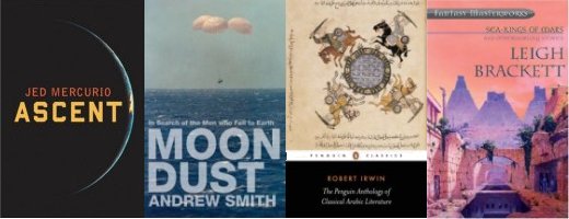For example, of this year’s five books, four authors were new to me – and two of them sparked off “enthusiasms” (which is what I call it when I find myself buying loads of books on a subject because I’ve found that initial book so fascinating). After reading The Penguin Anthology of Classical Arabic Literature, I went and bought a bunch of books on mediaeval Arabic literature. And Moondust