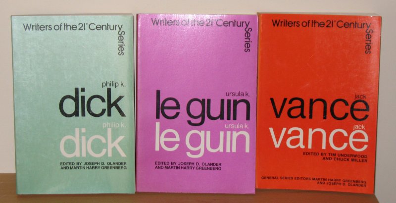 I picked these up years ago in a publishers’ clearance bookshop. I’m not sure why the series is titled Writers of the 21st Century, as only one – Le Guin – is still writing. Mind you, Philip K Dick is still being published, and having his stories adapted for the cinema, even though he died in 1982 (the book is copyrighted 1983). Jack Vance‘s last novel, Lurulu, was published in 2004, but we’re extremely unlikely to ever see anything new from him.