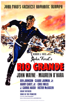Rio Grande, John Ford (1950). I am not, I admit, a big fan of Westerns. In fact, the only one in my DVD collection is Howard Hawk’s Rio Bravo – which is actually an alternative name for the Rio Grande, the river forming part of the border between the US and Mexico. Rio Grande the film is the third in Ford’s cavalry trilogy, following on from Fort Apache and She Wore a Yellow Ribbon, neither of which I’ve seen. It’s John Wayne doing manly men stuff in the Wild West as injuns run rampant and hide out in Mexico where Wayne’s cavalry can’t follow them. Except he does, even though it might provoke a diplomatic incident. Then he learns that the injuns have captured a wagonload of white kids, which only makes the mission more righteous. The US Cavalry must have been the biggest bunch of war criminals in uniform until the formation of the SS, and their portrayal in films such as Rio Grande has only romanticised their crimes. It’s unlikely a John Wayne film would be “warts and all”, given that there’s always been a strong element of fantasy to the depiction of the Wild West in Hollywood cinema. Wayne’s character may be a racist, but he’s still the hero…