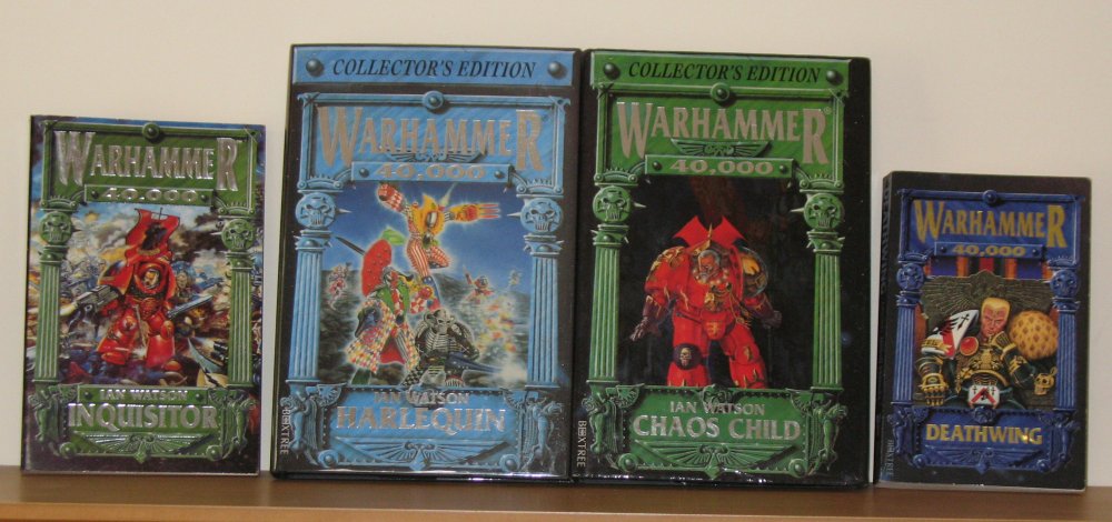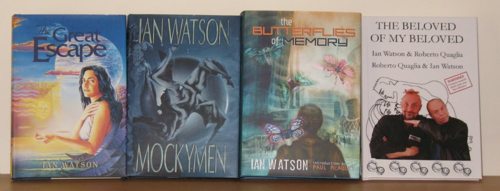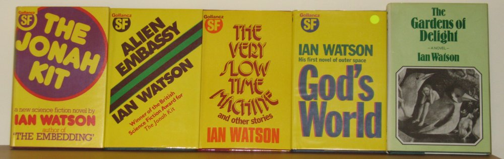 I suspect Ian Watson himself would probably scoff at being described as a national treasure of British science fiction, but in four decades he has written twenty-nine novels and a dozen collections and every single one of them is worth reading. As Adam Roberts can attest, as he’s been on something of a Watson kick recently. Myself, I’ve been a fan for many years and have managed to accumulate a goodly collection of first editions, many of which are signed. My collection is not complete, but it is close. No Space Marine, for example; though I’ve been looking for a good copy for years. And at least two books, I believe – The Whores of Babylon and Converts – were only published in paperback (I have them, but they’re not pictured below).