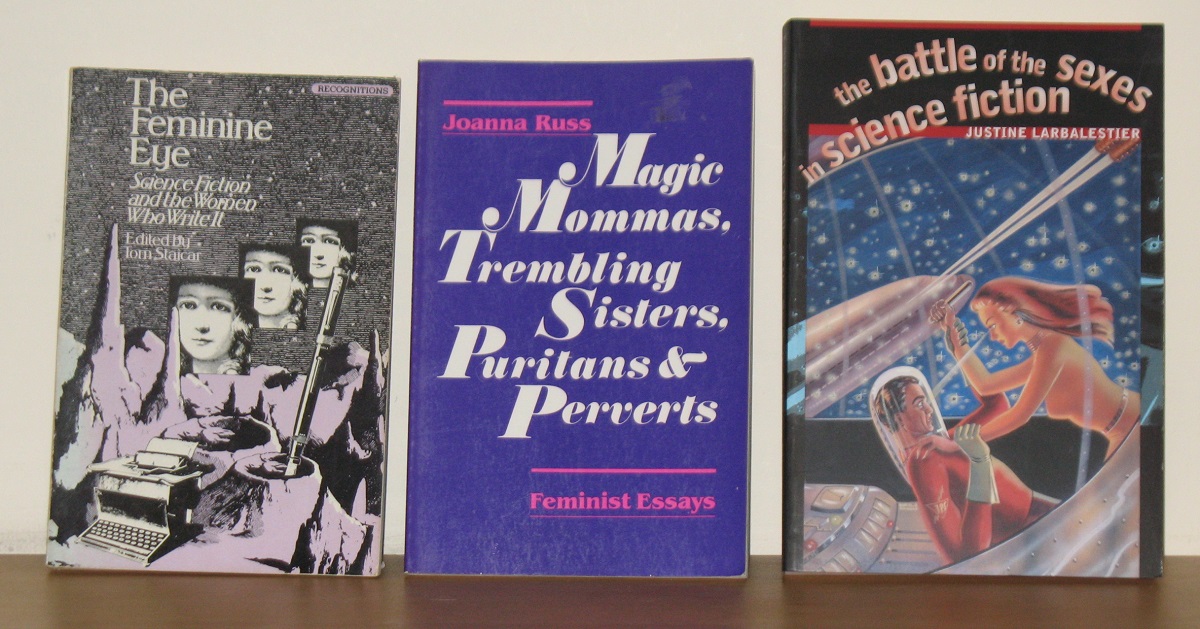 Some critical works on women science fiction writers. The Feminine Eye, edited by Tom Staicar, includes essays on Tiptree, Brackett, Moore, Norton, Cherryh and others. Magic Mommas, Trembling Sisters, Puritans and Perverts is a collection of Joanna Russ’s essays on feminism. And The Battle of the Sexes in Science Fiction is a study of, from the back cover blurb, “the role of women and feminism in the development of American science fiction” and I really need to read it for Apollo Quartet 4…