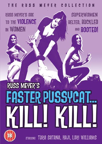 Faster, Pussycat! Kill! Kill!*, Russ Meyer (1965, USA). Back in the 1980s, I remember staying at my aunt and uncle’s and watching Jonathan Ross’s The Incredibly Strange Film Show, an episode of which featured Russ Meyer. In the, er, decades since, I’ve seen Meyer’s Beyond the Valley of the Dolls, which was pretty crap; and I can’t honestly say I’d ever bother watching any of his other films, but Faster, Pussycat! Kill! Kill! is – bafflingly – on the 1001 Movies You Must See Before You Die list so I dutifully added it to my rental list. Much is made of the fact the film features three women as its protagonists, and they are indeed strong murderous women, especially the leader, the scenery-chewing Tura Satana. Three exotic dancers in fast cars head out into the Californian desert, challenge a young man to a race, beat him to death afterwards, then descend on a nearby farm whose owner apparently has lots of money hidden somewhere… where things start to go wrong. The film is shot in black and white, with a mostly unprofessional cast, and whatever energy it possesses is likely a result of financial constraints than artistic agenda. It’s mildly amusing… and somewhat scary that this film stands out because of its gender roles – because, to be honest, stuff like that should not be remarkable.