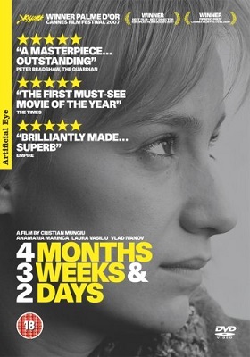 4 Months, 3 Weeks and 2 Days, Cristian Mungiu (2007, Romania). After being embarrassed by a Romanian friend at not having seen any films from his country, I’ve now seen three in the space of a couple of months. And I’d be hard-pressed to pick the best of those three. It’s not only that all three are excellent films – the other two, for the record, were 12:08 East of Bucharest and The Death of Mr Lazarescu – but they all tell stories of importance: about the collapse of the Ceauşescu regime, the pressure the Romanian public health system finds itself under, and, in 4 Months, 3 Weeks and 2 Days, the Ceauşescu regime’s handling of abortion. (And no, I don’t consider abortion a sensitive or offensive topic, I consider the choice a right all women should have; on the day I can grow a foetus inside me, then I’ll be qualified to decide whether it is a good thing or a bad thing.) 4 Months, 3 Weeks and 2 Days is set in the 1980s. A student at university is pregnant and needs to have an abortion. But it is illegal in Romania. She enlists the help of her room-mate, and the two track down someone who is willing to do it secretly for money. He gives them a series of instructions. They manage to screw them up – they book a room in the wrong hotel, they don’t have enough money, they lie about how long the woman has been pregnant… However, while the abortionist’s increasingly offensive demands on the two young women are, well, offensive, what is also scary about 4 Months, 3 Weeks and 2 Days is the invasive control the Ceauşescu regime had on the daily lives of Romanians. The Ceauşescus were overthrown in 1989 – I was in my early twenties then, and remember it on the news. But I’ve never asked my Romanian friends what they remember of it – they’re younger than me, true, but not too young; and they lived it. Movies like 4 Months, 3 Weeks and 2 Days are important in that they are a window on bad times, and keep the horror of them alive in the hope that no one is daft enough to bring them back. A decade or from now, I suspect there will be a fuckton of films made about the Trump years in the US.