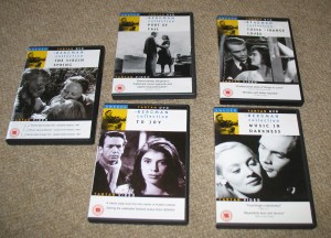 Three Strange Loves, Ingmar Bergman (1949, Sweden). This is the second of a batch of Bergman DVDs I bought recently. It is, like many, perhaps most, of Bergman’s films, about marriage. In this one, Rut and Bertil are heading back to Sweden by train after visiting Italy. There are lots of flashbacks, recalling Rut’s affair with an army officer, who is probably the only character in a Bergman film to boast a moustache, and Bertil’s affair with a widow. The army officer forces Rut to have an abortion; the widow is in thrall to a sadistic psychiatrist, and then commits suicide. Perhaps Bermgan should have titled this one To Joy as well. Eventually, Bertil kills Rut during a fight… but it was only a dream. Scared by the dream, the two decide to try and save their marriage. I don’t actually remember much from this film – it was over a week ago I watched it – except one scene where Bertil and Rut’s train pulls into a station, and the train in the next track is travelling from Sweden, and the couple in the compartment alongside theirs is… the military officer and his wife. Which is just a little too coincidental to be believable. The film’s original title is Törst, which means “thirst”. Three Strange Loves, on the other hand, is a weirdly literal title, something for which Bergman’s films are, frankly, not known.