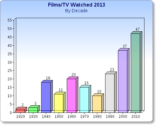 Yes, that’s a lot of American films – but they do produce a lot of films. It’s all those classic movies, you see. Great Britain comes second, followed by France, Germany, Russia, Japan and then Italy. I think in 2014 I’ll try to watch less US films. That sounds like a resolution worth keeping.
