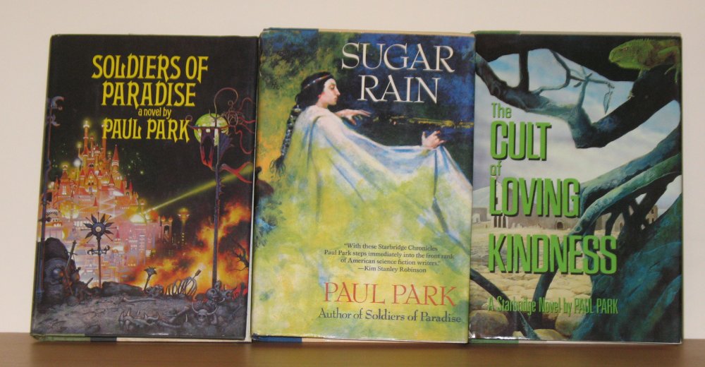 There are so many references to Park’s actual oeuvre in All Those Vanished Engines – not just obvious ones, clearly linked in the text to earlier novels; but also characters named for characters in other of his novels. Then there is Park’s own life, and the mirror images of it which are presented in two of the three novellas. As Dire Straits famously sang, “Two men say they’re Jesus / One of them must be wrong”. Except both Parks in All Those Vanished Engines are plainly not the real Park. They are as much a fiction as the invented worlds, as much a fiction as the presentation of the act of creating those invented worlds.