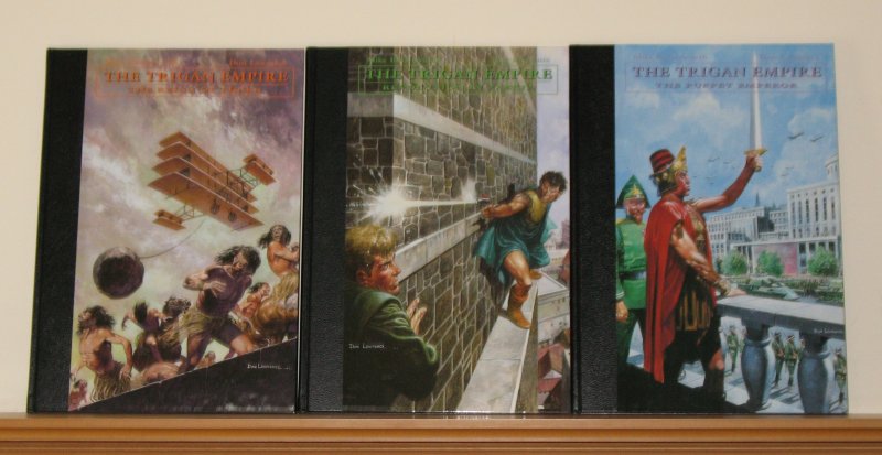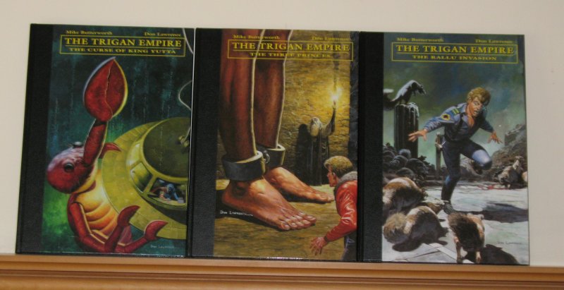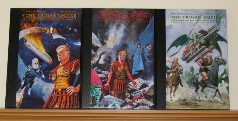 Between 2004 and 2009, the Don Lawrence Collection in the Netherlands reprinted all of Lawrence’s Trigan Empire strips in handsome leather-bound volumes. Each volume includes an essay on one aspect of the strip’s world. There are twelve volumes. To be honest, the stories are often quite crap – as they were for Dan Dare – but the art is gorgeous – again, as it was for Dan Dare. If Dan Dare inspired a generation of British boys in the 1960s to become sf fans, then the Trigan Empire did the same in the 1970s.