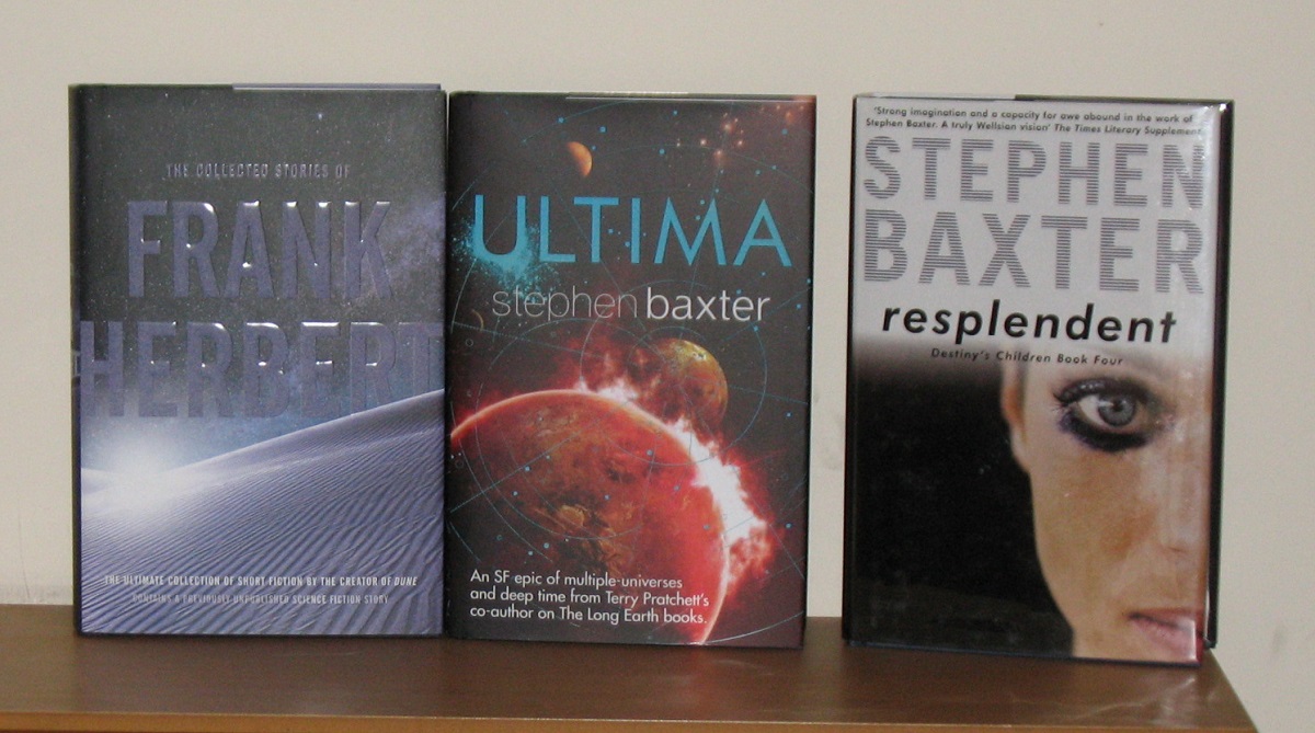 I finally managed to track down a hardback copy of Resplendent, so now I have the set. I’ve read the first two – I quite liked Coalescent, but was disappointed by Exultant. I was disappointed by Proxima too, but nonetheless I bought the sequel, Ultima. And I’ve long been a fan of Frank Herbert’s fiction, and while I probably have most of the contents of The Collected Stories of Frank Herbert in other collections, I fancied a copy of it.