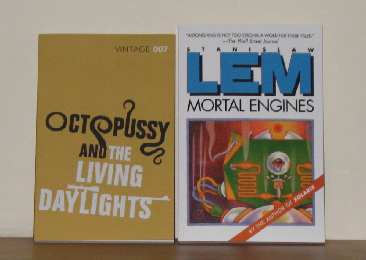 A pair of paperbacks – Octopussy & The Living Daylights because I’ve been working my way through the 007 books because I’ve no idea; and Mortal Engines because I’ve decided Lem is an author I should read more by.