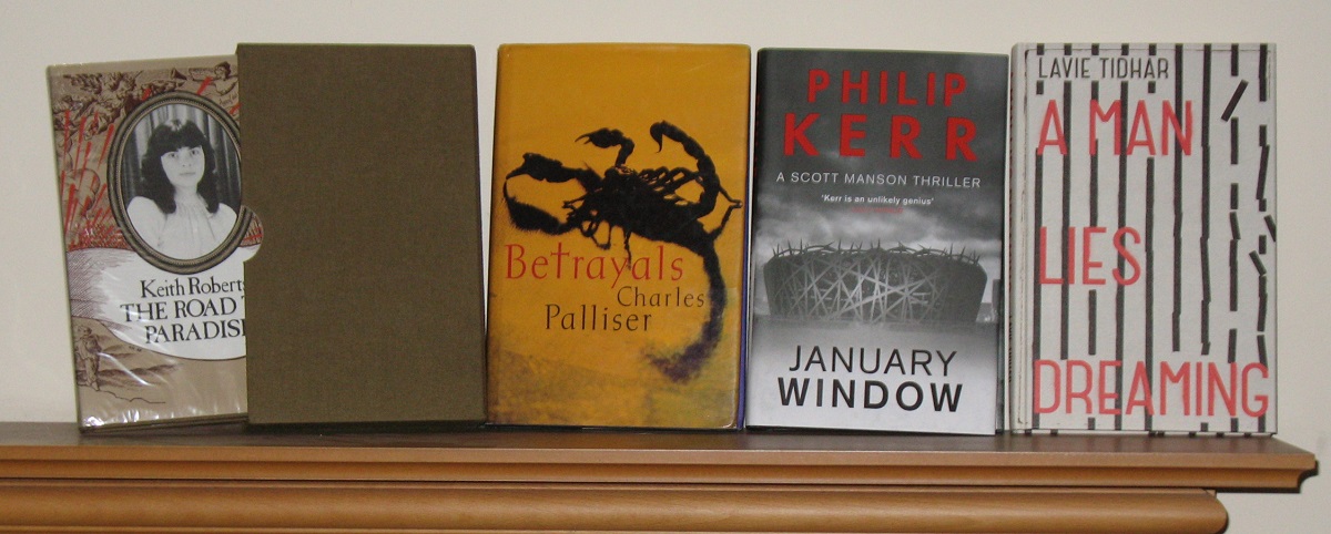 Finally, a selection of first editions. A Man Lies Dreaming, which I think I might have seen mentioned on Twitter recently once or twice; January Window, the first in the Scott Manson series by the author of the Bernie Gunther novels; Betrayals, which features a superb pastiche of both Taggart and Jeffrey Archer, and I really want all of Palliser’s books in hardback; and a lovely slipcased Kerosina book, The Road to Paradise, a mainstream novel, which comes packaged with a short travel book, Irish Encounters.