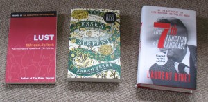 Some new books: The 7th Function of Language, The Essex Serpent and The Power (not shown) I bought in Waterstone’s a few Saturdays ago, before meeting up with friends for the Sheffield SF & Fantasy Social. I took The Power with me to Helsinki to read during the trip, and gave it away when I’d finished it. Lust was from a large online retailer. I decided it was time to read another book by Elfriede Jelinek – I read her The Piano Teacher a couple of years ago, and thought it very good.