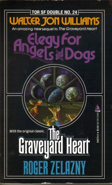 The Graveyard Heart / Elegy for Angels and Dogs, Roger Zelazny / Walter Jon Williams (1964/1990, USA). I have almost a complete set of the Tor doubles, which I started collecting after finding half a dozen of the early ones in a remainder book shop in Abu Dhabi. I’m not convinced there’s been a consistent editorial agenda with this series – which topped out at 36 books in two years – given that earlier volumes were just two novellas back-to-back (tête-bêche, to be precise), but that was dropped in favour of printing both the same way up, as if it were an anthology of two stories. Some of the later ones also featured classic novellas with modern sequels by another hand, as this one does. ‘The Graveyard Heart’ by Roger Zelazny is from 1964. ‘Elegy for Angels and Dogs’, a direct sequel, is from 1990. To be honest, I’ve never really understood the appeal of Zelazny’s fiction. He’s reckoned to be one of science fiction’s great wordsmiths, and while he may be a great deal better at stringing a sentence together than many of his peers, I’ve never really understood why his prose is held in such high regard. It’s… okay. And in ‘The Graveyard Heart’, some of it is actively bad. In the novella, a subset of the jet set, a group of rich young party animals sleep in cryogenic suspension for most of the year, and only appear for exclusive and expensive social events. They are the Party Set. So while they live the sort of life capitalist society continues to valourise, they also travel forward through time, experiencing years in subjective weeks. But then one of them is murdered and… yawn. Dull murder-mystery in totally unconvincing setting ensues. Williams’s sequel moves the action forward a couple of centuries, tries to show the changes in Earth society the Party Set are missing (and that does, in fact, drive part of the plot), but also throws in a couple of murders for good measure. The result is something which isn’t sure how direct a sequel it should be. It’s more inventive than its inspiration, the language is plainer and better for it, but its lack of focus tells against it. Both are no more than average.