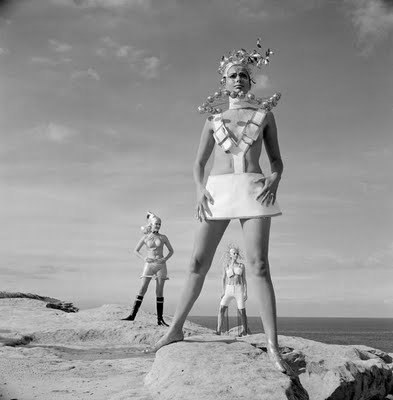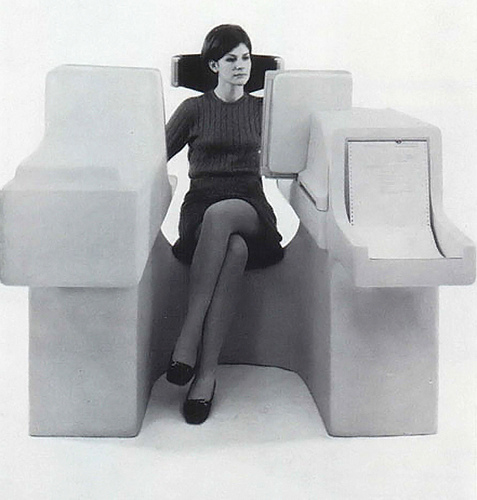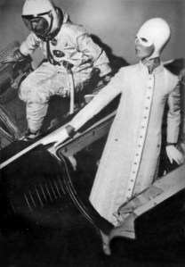 There’s an unfortunate tendency for these retro-futurist posts to go all a bit boys-toys-ish. That’s understandable, given that Cold War supersonic fighters and bombers did, well, did look pretty cool. Likewise the cars. And, sadly, hunt for contemporary fashion photos and it’s almost impossible to find ones depicting men in space age outfits – it’s all women. Even the sales photographs for the giant computer brains generally have women posed as if operating them.