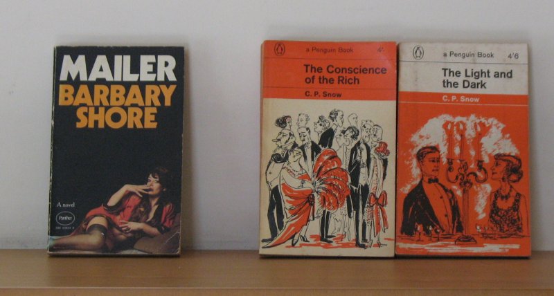 Three paperbacks by two dead white males. I’ve read the first book of Snow’s Strangers and Brothers and I plan to read the entire series. The Conscience of the Rich and The Light and the Dark are books three and four respectively (by internal chronology, not year of publication). Of course, I will only buy matching editions – the 1960s Penguin paperback editions. A local charity shop had a bunch of 1970s Norman Mailer paperbacks in – just look at that cover – and I picked out Barbary Shore. I may go back and buy the others, if they’re still there.