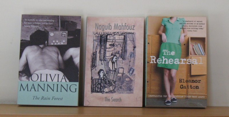 Three charity shop finds. Eleanor Catton’s The Luminaries has been longlisted for the Booker and looks very interesting, so I was quite chuffed to stumble on a copy of her first novel, The Rehearsal… which David Hebblethwaite tells me is the best book he’s read in the past five years. You don’t expect to find Naguib Mahfouz novels published by the American University in Cairo Press in Yorkshire charity shops, but I found one. I read Mahfouz whenever I stumble across copies of his books. I still have his Cairo trilogy – in Arabic, of course – to read… Olivia Manning’s The Balkan Trilogy and The Levant Trilogy – also adapted for television as Fortunes Of War – are brilliant, so she’s a name I certainly look out for during my frequent trawls through books in the local charity shops. The Rain Forest was her last novel.