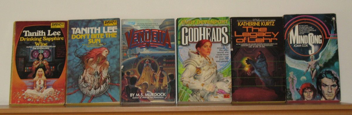 The Children of Anthi, Jay D Blakeney (1985). The more observant among you will have noticed that most of the books in this post, and the two preceding, have been by male writers. I did not at that time note the gender of the authors whose books I read. I did read some female science fiction authors – and indeed some were favourites, such as Cherryh – but my reading was predominantly genre books by male writers. The Children of Anthi, and its sequel Requiem for Anthi, are not generally held up as great science fiction, although they’re much better than they should be. Blakeney is a pseudonym used by Deborah Chester for four sf novels published between 1985 and 1990. I’ve never read anything else by Chester other than her Blakeney books, and she used a number on pen-names. The Children of Anthi is an excellent exemplar of one stream of my science fiction reading during the decade, possibly inspired by Angel at Apogee: I actively sought out books by female US mid-list sf authors – at least in Isam Bookshop which, fortunately, seemed to have a good supply. This later fed into SF Mistressworks, a project I kicked off in 2010.
