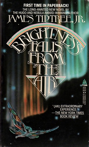 I’ve seen Brightness Falls from the Air (1985, USA) described as Tiptree best-known but least-liked novel. She only wrote two and is much better known for her short fiction, so it seems a dumb way to refer to the book. And yet, except for the under-age sex, there’s a lot to like about Brightness Fall from the Air. The main plot is perhaps not intrinsically sf, although Tiptree makes the setting entirely genre, and the many plots and subplots she handles with admirable deftness. It’s perhaps the most colourful and yet bleak novel I’ve read.