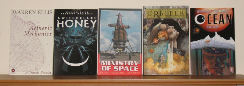 Warren Ellis is British, but much of his work has been done for various US comics publishers. Several of the mini-series he has written are science fiction – such as the above. Ministry of Space, an alternate history story in which the British have a post-war space programme is especially good. Not shown are Ignition City and Anna Mercury, which a friend is currently borrowing.