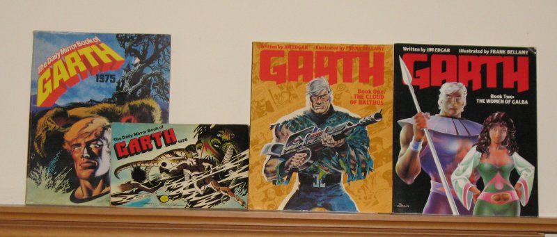 Another excellent sf strip from a newspaper is the Daily Mirror’s Garth. This ran from 1943 until 1997, but it’s the Frank Bellamy version I remember best. He drew it from 1971 to 1976 (my grandfather subscribed to the Daily Mirror, and I’d read the strip whenever I visited him). In the mid 1980s, Titan reprinted two stories in individual volumes – The Cloud of Balthus and The Women of Galba (ignore the awful cover art). The Daily Mirror only published two Garth annuals, in 1975 and 1976 – both are shown. Given there are 165 Garth stories, it’s about time someone did a proper job of collecting and republishing them.