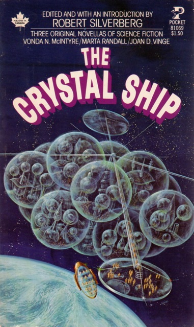 The Crystal Ship, Robert Silverberg, ed. (1976) Although a male sf writer’s name appears prominently on the cover of this book, it actually contains three original novellas by women: ”The Crystal Ship’ by Joan D Vinge, ‘Megan’s World’ by Marta Randall and ‘Screwtop’ by Vonda N McIntyre. The last also appeared in The New Women of Wonder (see SF Mistressworks review here), and was published in 1989 as one half of a Tor double with James Tiptree Jr’s ‘The Girl Who Was Plugged In’.