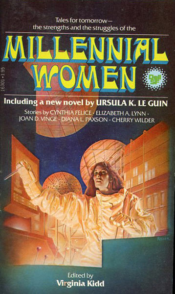 Millennial Women, Virginia Kidd, ed. (1978) Kidd was a member of the Futurians and an influential editor. While this anthology is perhaps not as strong as any of the Women of Wonder anthologies, it does present a wide variety of sf stories – provided by Cynthia Felice, Marilyn Hacker, Diana L Paxson, Elizabeth A Lynn, Cherry Wilder, Joan D Vinge and Ursula K Le Guin. Some editions of the book were sold as Le Guin’s short novel, “Eye of the Heron and other stories”, with Le Guin’s name most prominent on the cover. I reviewed it on SF Mistressworks here.