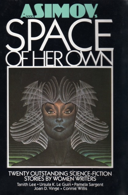 Asimov’s Space of Her Own, Shawna McCarthy, ed. (1983) As the title indicates, this anthology contains women-authored stories originally published in Isaac Asimov’s Science Fiction Magazine. Asimov’s regularly published themed anthologies of contents drawn from the magazine – McCarthy herself edited four of thirty such anthologies. The contents date entirely from 1981 to 1983, and are provided by Connie Willis, Mary Gentle, Leigh Kennedy, Sydney J Van Scyoc, Ursula K Le Guin, Pamela Sargent, Joan D Vinge, Julie Stevens, Mildred Downey Broxon, Cyn Mason, PA Kagan, Sharon Webb, Pat Cadigan, Lee Killough, PJ MacQuarrie, Tanith Lee, Stephanie A Smith, Cherie Wilkerson, Janet Asimov, Beverly Grant and Hope Athearn. None of the stories are especially well-known.