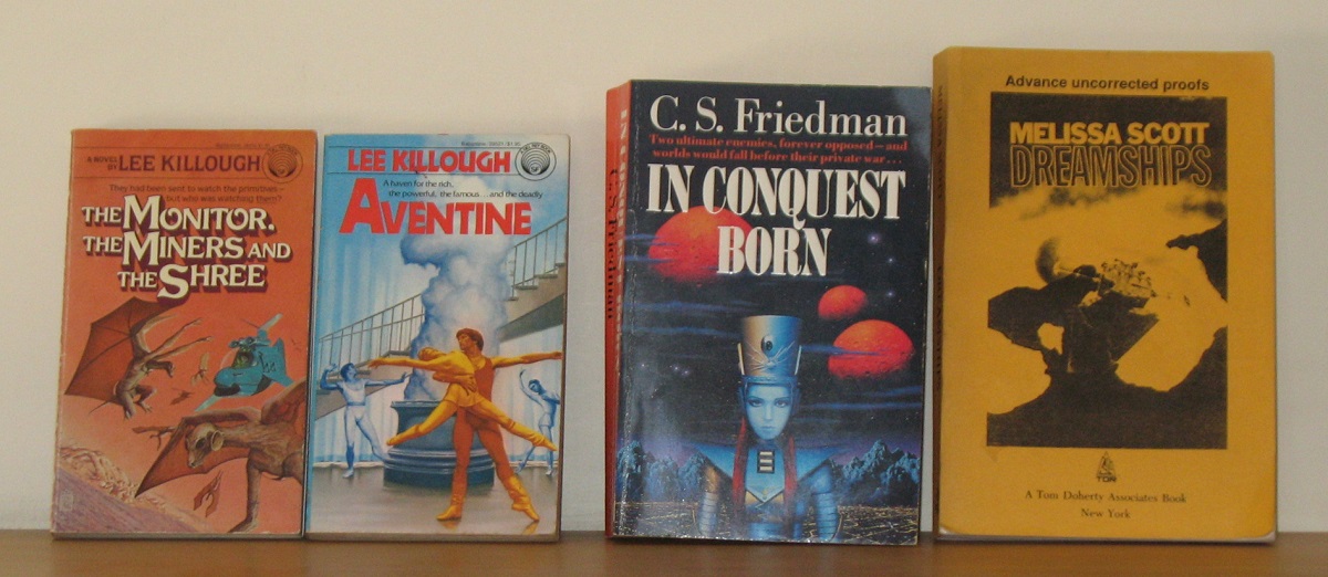 The Grass King’s Concubine, Kari Sperring (2012). I bought this after it was pointed out that I don’t read enough by fantasy by women writers by the author herself (it was a general admonishment on Twitter, not one personally directed at me, but I felt it was a fair comment). And I’m glad I did. I am not a huge fan of epic fantasies – I’ve read a fair number of them, and no longer find their tropes or stories interesting. Happily, The Grass King’s Concubine is nothing like an epic fantasy. Fantasy, yes; and a very cleverly done one. But not epic. And that’s meant as a compliment. Aude is the daughter of a rich land-owner, not old money but rich enough to be accepted into high society, but she is curious as to the source of her family’s wealth and determined not to marry and become just another trophy wife. After a couple of visits to the Brass City, the Dickensian industrial part of the city where she lives, she ends up running away with provincial officer Jehan. Aude’s search ends up with her being forcibly taken to the WorldBelow, ruled by the Grass King; and Jehan is taken there by a pair of ferrets who can take human form and act as guardians to the gate. Aude is a refreshingly forthright and active female protagonist, and there’s a welcome line of social commentary running throughout The Grass King’s Concubine. The fantasy elements are also interesting, original and well thought-out – Aude’s explorations of the Grass King’s palace are particularly well-drawn. If I had to recommend a modern fantasy novel I’d be more than happy to recommend this one. Go and get yourself a copy.