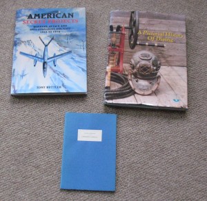 I wanted a copy of A Pictorial History of Diving the moment I stumbled across a copy on eBay. But it was over $100. So I kept an eye open, but in the end I had to source a reasonably-priced copy from abebooks.co.uk. I have quite a few of the Secret Projects book, but I missed several when they were originally published in the 2000s, like this one, American Secret Projects: Bombers, Attack and Antisubmarine Aircraft 1945 to 1979. The Lawrence Durrell chapbook is a signed limited chapbook from Tragara Press reprinting David Gascoyne’s obituary of Durrell from The Indpendent. Well, Durrell innit.