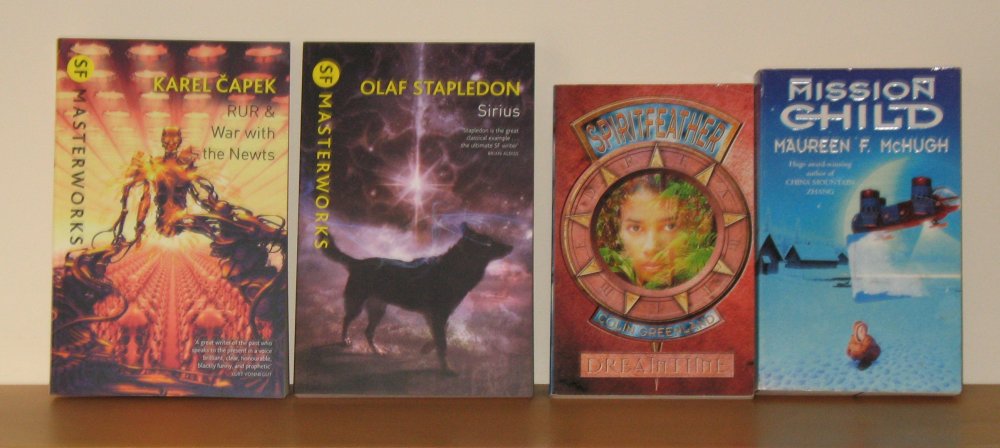 I’m sort of getting into this ebook thing. Four of the books below are ebooks; the other two are paperbacks I brought with me. And no, I don’t know why I brought Troubled Star. It’s a duplicate copy, and I have much cleaner copy in storage, so I probably just threw it in the suitcase rather than bin it.
