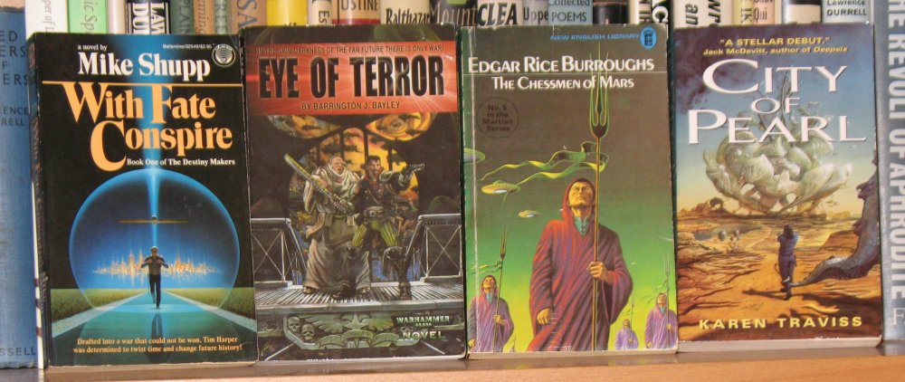 Total Eclipse, John Brunner (1974, UK). I’ve no idea why I bought this, and even less why I read it. Call it a whim. I’ve read perhaps half a dozen novels by Brunner over the years, and while he wrote some notable sf during his time I’ve never really felt a need to read him. He is, I suppose, a sort of British Silverberg. And, like Silverberg, he produced a handful of highly-regarded works, a great many potboilers, and a number of solid science fiction novels. Total Eclipse falls into the last category. It’s a straightforward sf mystery, its plot almost a staple of the genre: humans colonise a long-dead world but, despite all their research, cannot figure out what killed off the world’s original inhabitants. Meanwhile, the situation on Earth is deteriorating and it’s no longer certain Earth’s one and only starship will return to Draco Pavonis on its next supply run. Cue a fevered attempt to understand what killed the planet’s indigenes, driven partly by desperation and partly by the arrival of a neuro-atypical archaeologist. Eventually, of course, they find out what happened, but it’s too late to save them. This is not a cheerful book. I liked it. I thought it made a good fist of its premise. The science seemed mostly convincing to me, although actual experts – remember those? people who have actually studied shit and know what it means – might be less forgiving of some aspects of the novel. Overall, it struck me as a solid piece of seventies UK sf.